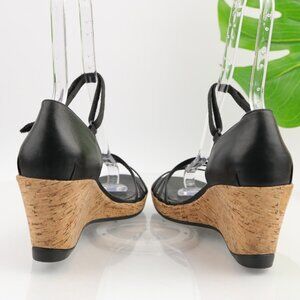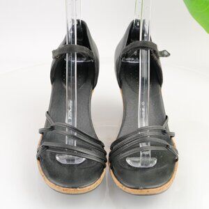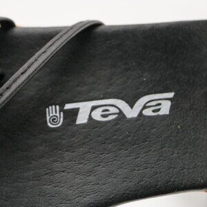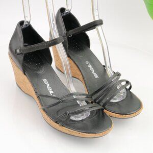 Teva Womens Riviera Sandals Size 11.5 Black Leather Strappy Cork Wedge Heel Shoe
