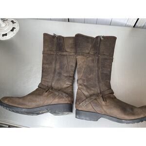 Teva Women's Size 8 Brown Distressed Leather Zip Knee High Tall Waterproof Boots