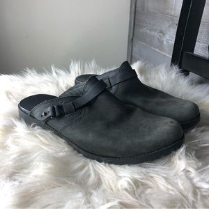 Teva black leather Delavina slip on comfort clogs mules size 9