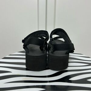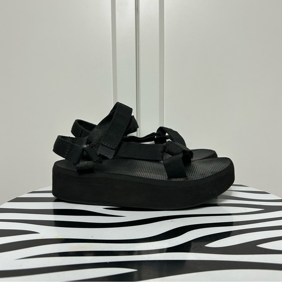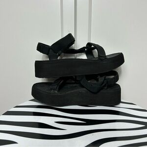 Step out in style with these chic black platform sandals. Perfect for any casual outing, these sandals offer both comfort and fashion.