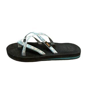 Teva olowahu Sandals Womens 8 Teal Blue Black Flip Flips Shoes Patterned
