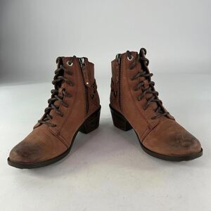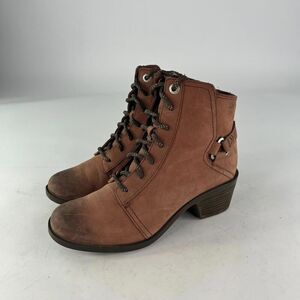 Teva Foxy Lace Up Ankle Boot Womens US 6.5 Brown Waterproof Leather Side Zip