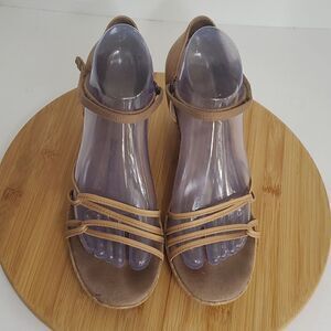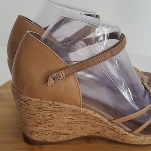 Teva Women's Cork Wedge Strappy Leather Sandals Tan Size 9.5