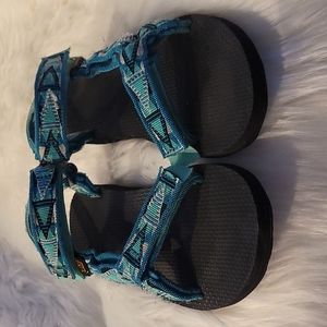 worn couple of times. No foot markings from being worn. Still new sole. Used the backpacking and that was it. Didn't hike in them just used more so around the campsite. Does have a little of the stitching is coming out, my guess is from the velcro.