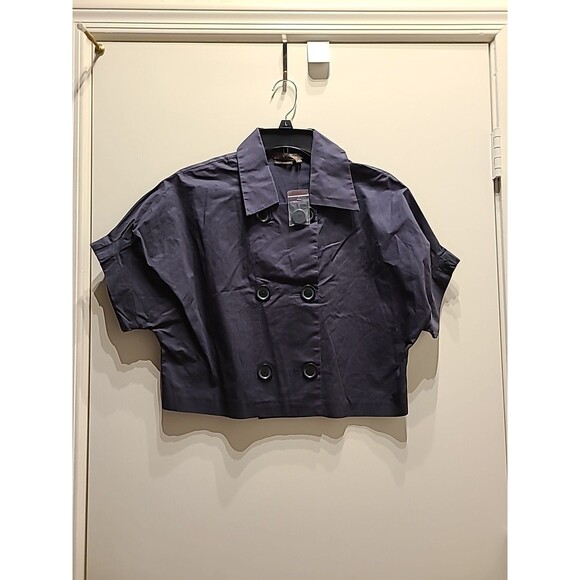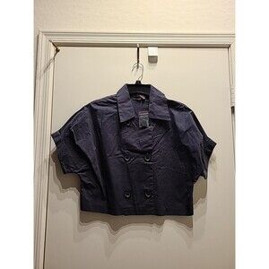 Tex by MaxAzria Gray Blue Button-Up Cotton Blazer Womens M Nwot