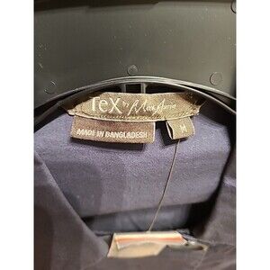 The Tex by MaxAzria Gray Blue Button-Up Cotton Blazer for women in size M is a stylish and versatile addition to any wardrobe. small cuts on inside of sleeves. Made from cotton with a chambray fabric type, this blazer features a classic button-up style with a blue color that adds a pop of personality. Perfect for a professional setting or a casual outing, this blazer is a basic jacket that can be dressed up or down to suit any occasion.