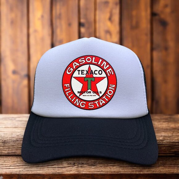 Texaco Gasoline Mens Trucker Hat Black Snapback Gas Oil Vintage Logo Ball Cap