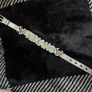 Stylish Texans bracelet with rhinestone details. Features team logo accents.