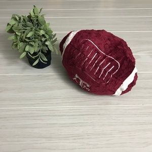 Texas A & M Aggies plush stuffed mascot. It can be converted from a plush animal into a football. Has zipper and you turn it inside out to change it.