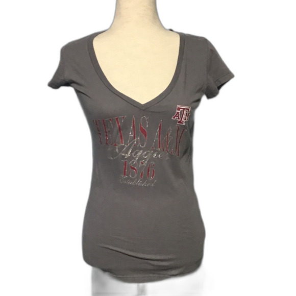 Texas A&M Aggies V-Neck Tee Gray Pink Women's Medium