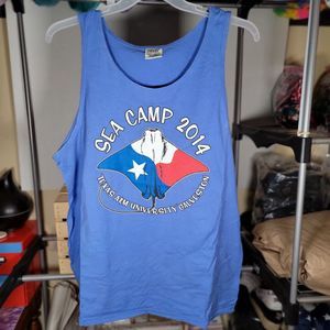 Comfort Colors Tank Texas A&M University Galveston Sea Aggie Camp 2014 Graphic Blue - Size Large. Excellent condition. Comes from a smoke free home.