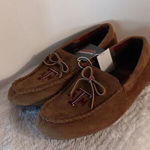 These New with tags brown faux suede Texas A&M flannel lined slippers are a size M (9-10). Offers are welcome.