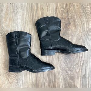 #TexasMade #CowboyBoots #KidsFashion #PoshmarkFinds #WesternStyle #OstrichPrint #DurableFootwear #AmericanCraftsmanship #PoshKids #BlackBoots #StylishKids