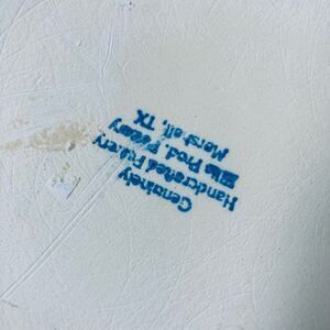 New condition large ceramic handmade heart shaped ceramic ivory white blue and green pottery decorative bowl or casserole dish with hand painted Texas bluebonnet graphic. Great gift or collector item. Marshall, TX.