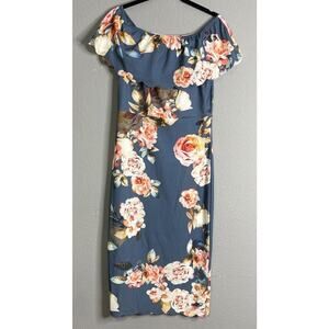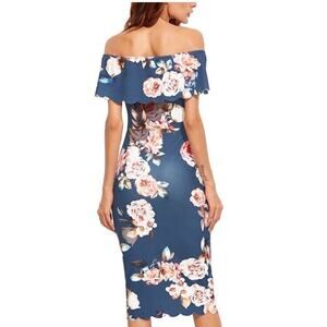 Texas Boutique Off the Shoulder Floral Midi Dress Pencil Bodice Floral Scalloped