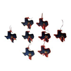 Texas Christmas Ornaments Lot of 8 Red Blue Tassel Handmade Western Holiday Gift