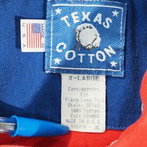 Texas Cotton Shirt Mens Extra Large Red USA Long Tail Cowboy Western Ranch Rodeo