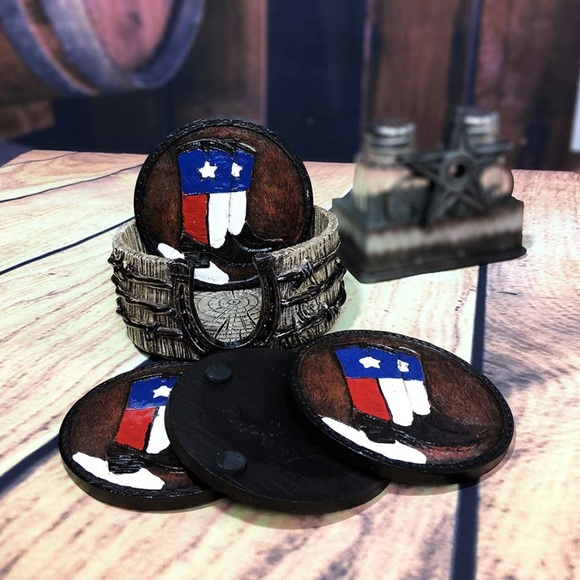 Texas Cowboy Boots Coasters W/ Barbwire Horseshose