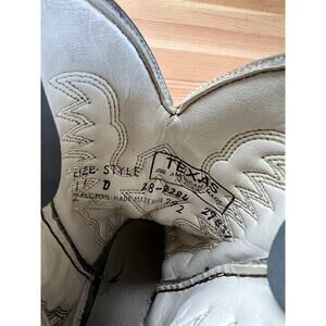 Texas Cowboy boots kid size 11 brownDog friendly home. Clothes washed and dried in dryer, hence some fading.