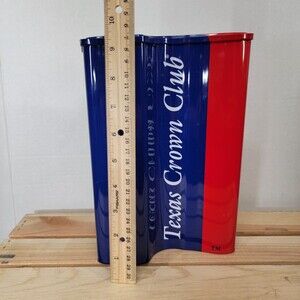 Texas Crown Club Whisky Tin 9.5" Tall. Has a couple of minor scratches, with the worst one being in the LAST picture. Comes from a smoke free home.