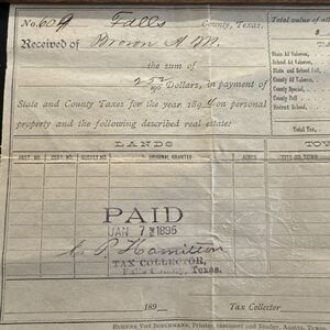 Very rare HTF Texas Tax bill from 1895 this is from fall county Texas between Waco and Austin a true gem!!!