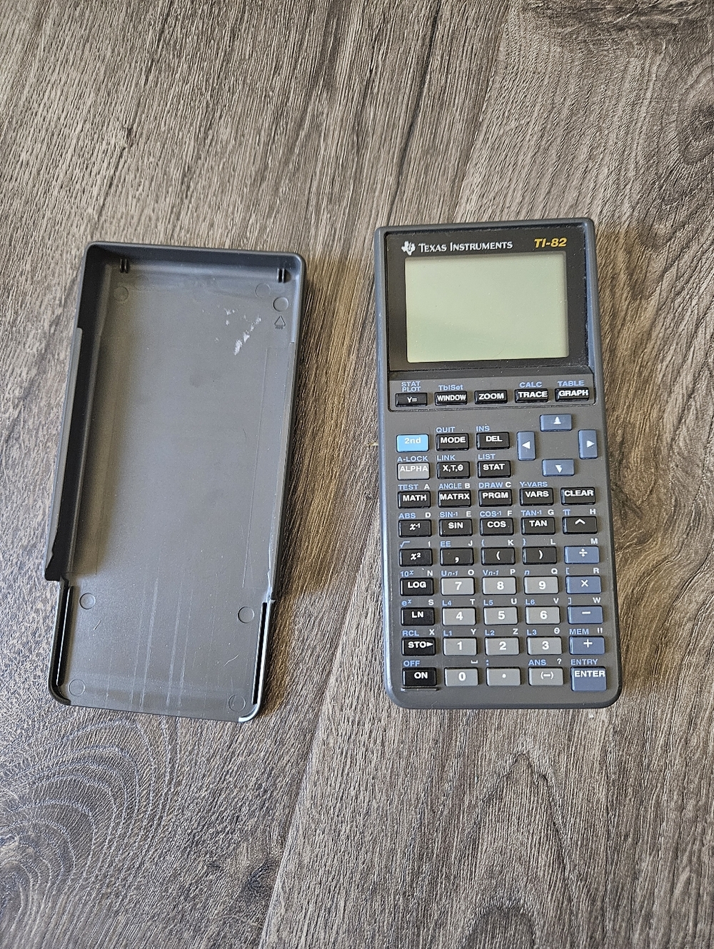 TI 82 Texas Instrument graphing calculator with cover. In working order when I tested it. Will not ship with batteries (other than the button battery).