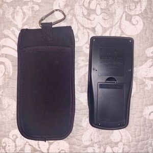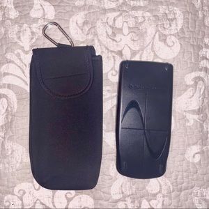 Comes with the black soft cover case as pictured.