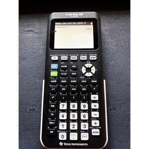TI-84 Plus CE Python edition graphing calculator. This model includes Python programming capabilities, a high-resolution color display, and a rechargeable battery. It comes with the original protective cover. charger cord not included.