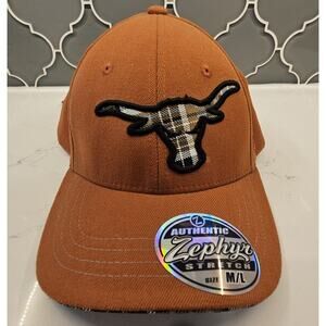 Texas Longhorns NCAA Men's Fitted Zephyr Orange/Plaid Hat Stretch Size M/L NWT