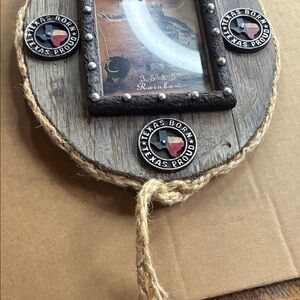 Celebrate your Texas pride with this rustic rope picture frame. The brown wood finish adds a warm touch to any room.3.5 by 5 inch frame new
