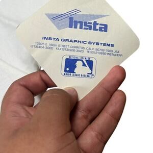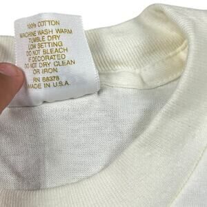 Classic 1989 deadstock MLB licensed Nolan Ryan graphic tee featuring his Topps baseball card design. Crisp print on a white Tennessee River Gold blank, made in USA. Comes new with original hang tag still attached. Excellent unworn condition.
