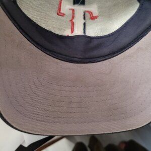 Show your support for the Texas Rangers with this unisex adult baseball cap by '47 Twins/nineteen47.com. The black color and velcro strap make it a versatile addition to any fan's collection. The cap is OFSA (one size fits all), and features the team's logo prominently on the front and is 85% Acrylic and 15% Wool. This ball cap is in very good gently used condition with no rips or tears. There is a very slight staining on the inside brim. This cap is perfect for any Major League Baseball fan who wants to show off their love for the sport!