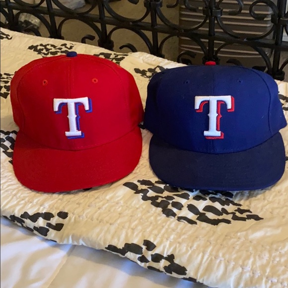 Lot of 2 Texas Rangers caps 1 red 1 blue