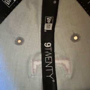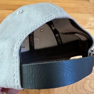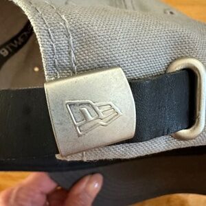 Texas Rangers KIDS Child MLB Genuine Merchandise Cap Hat Gray. Light gray with dark gray bill. Rangers' "T" thickly embroidered in red on the front. New Era logo on left side of cap. Black leather back strap with silver tone tab that has the New Era logo stamped on it. Genuine MLB merchandise. Child size. Excellent, clean, like NEW condition.