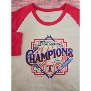 Texas Rangers Majestic Womens 2023 World Series Champions Raglan T-Shirt Large