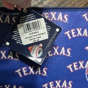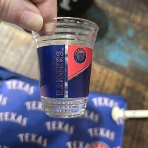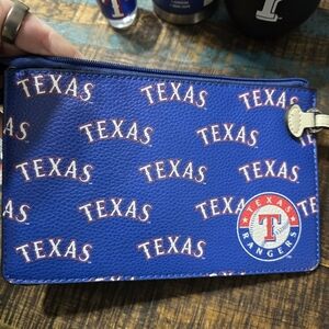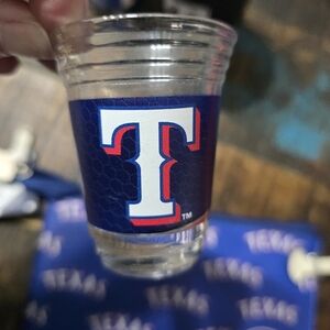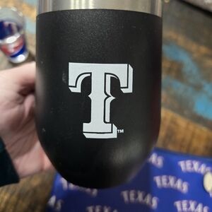 Texas Rangers tumbler, wine tumbler, shot glass and wristlet. all new.