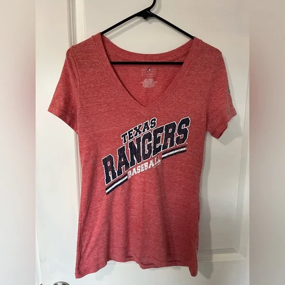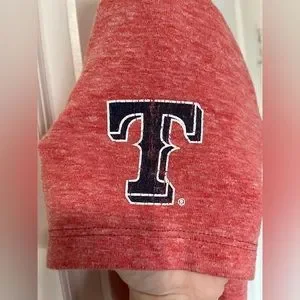 Woman’s Small Tee - rep those Texas Rangers at the ball park with this fun tee! Is a more faded red color and is in great condition with a cute T on the left sleeve.