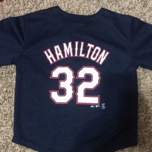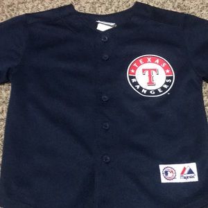 Texas Rangers button up tee-shirt. Could be for a boy or a girl. Size 5/6. Great condition! #33 Josh Hamilton.