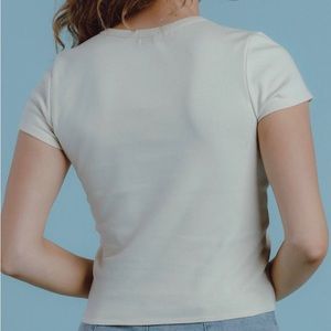Other details: Crewneck. Short sleeve. Fitted silhouette. Cropped above the waist. Machine wash.