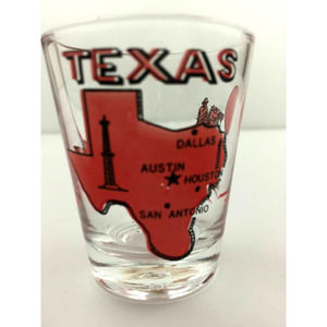 Texas State Map Mini Shot Glass Red Longhorn Rodeo Cowboy Barware