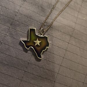 Gold-trimmed Texas state pendant featuring a star. Perfect for showing state pride.