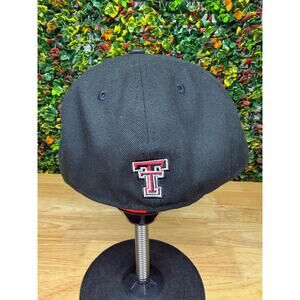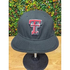 Texas Tech Red Raiders NCAA New Era 59Fifty Fitted Hat Black Red Bred 7 1/4 GUC
