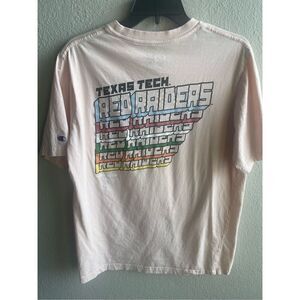 Texas Tech Women’s Light Pink Tee by Champion Graphics on front pocket and back Excellent condition Size Large