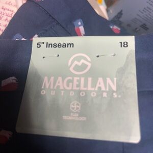 Navy Magellan shorts in women's 18 which is a mens small/ medium- button closure with zipper. New with tags. Texas flag designs