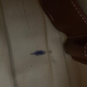 There is an ink spot in one pocket. The rest of the bag is immaculate.