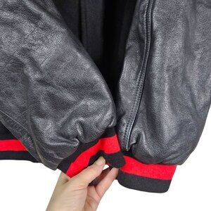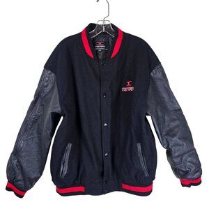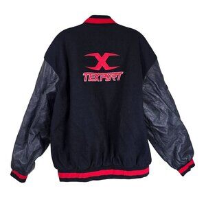 Texport Black & Red Wool Bomber Jacket 2XL Leather Sleeves Moto Bikercore Grunge