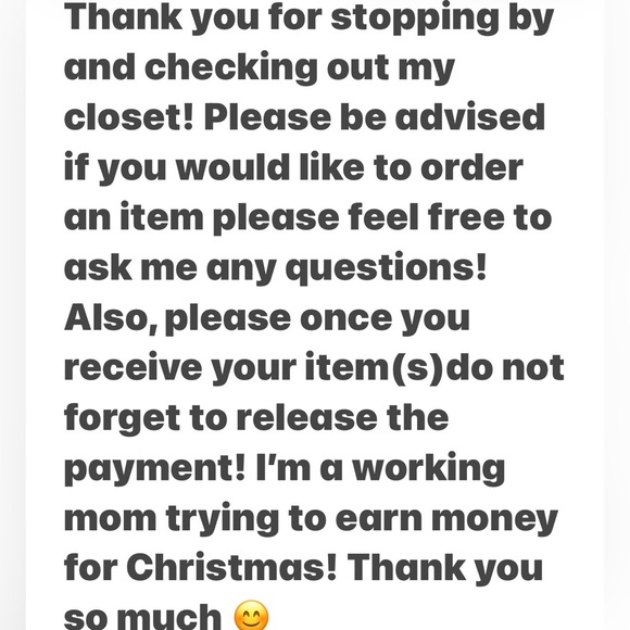 This appears to be a text-only image with a message about a Poshmark closet. No physical product is shown to create a listing for.