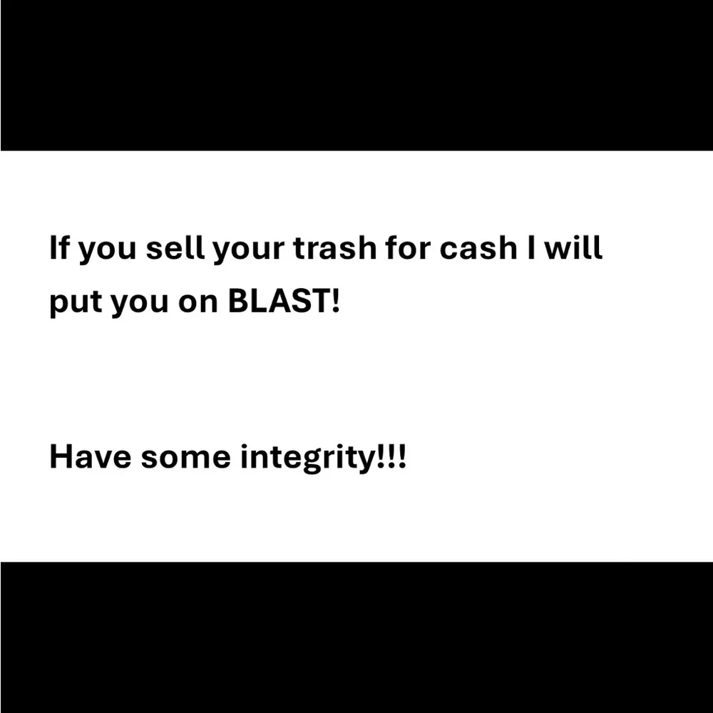 A text-based warning message about selling items. The message appears in white text on a black background.