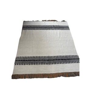 Beautiful alpaca wool blanket throw from Peru. Lovely neutral black, grays and whites. Geometric pattern. No stains or holes. 67 (without fringe. With fringe its 7 longer). 60 wide. Soft. Great traditional, boho, contemporary look.