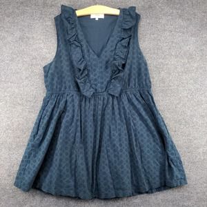 Textile Elizbeth and James Women's A-Line Eyelet Dress Blue XXXL Ruffle V-Neck